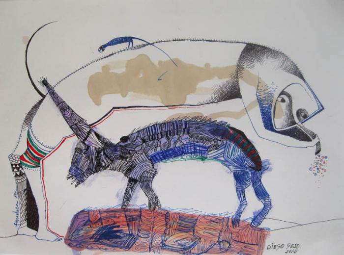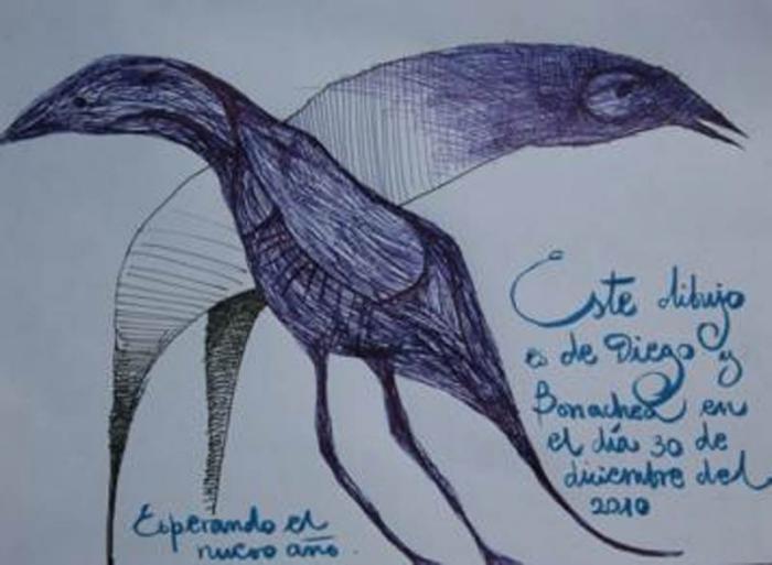 Tenía Diego cuatro años cuando Bonachea se animó a intervenir por primera vez en uno de los dibujos del niño, en diciembre del 2010. Ya cuando la muerte sorprendió al maestro a la edad de 55 años, a fines del 2012, ambos habían concebido, tan lúdicamente como se concibe el arte, varias piezas a dos manos que este cubano universal se proponía incluir en una exposición.