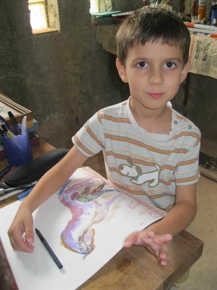 El padre del pequeño, Gabriel Gejo, amigo del pintor, me hizo la revelación mientras me mostraba en una reciente tarde los dibujos y las fotos de ambos, que no me perdonaría dejar de compartir.
