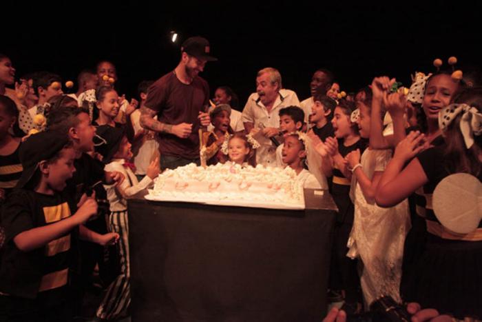 Al final de la función, celebraron juntos otra mágica coincidencia y es que el día en que Sergio Ramos por primera vez visitaba a La Colmenita, cumplió años la colmenera más chiquirritica: Danna, que es conocida por su interpretación del personaje de Meñique. Juntos picaron una torta de cumpleaños, mientras el Presidente de la Peña Cubana de fans del Real Madrid en Cuba sorprendía a Sergio Ramos con una réplica de la Copa que lo convirtió en “El Héroe de la Décima” en la Liga de Campeones.