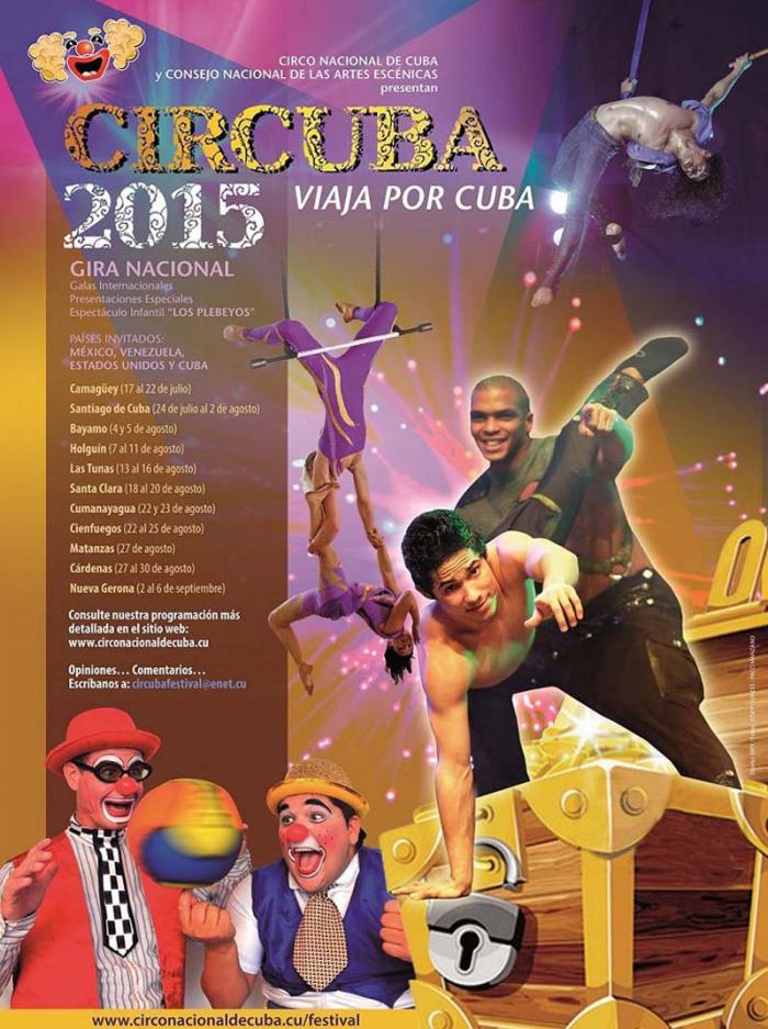 Domingo 23 / 11:30 a.m. / Los Plebeyos / Cirko Alebrije (México) / Anfiteatro de Cumanayagua/ 9:00 p.m. / Función de gala / Sala Polivalente El Frontón