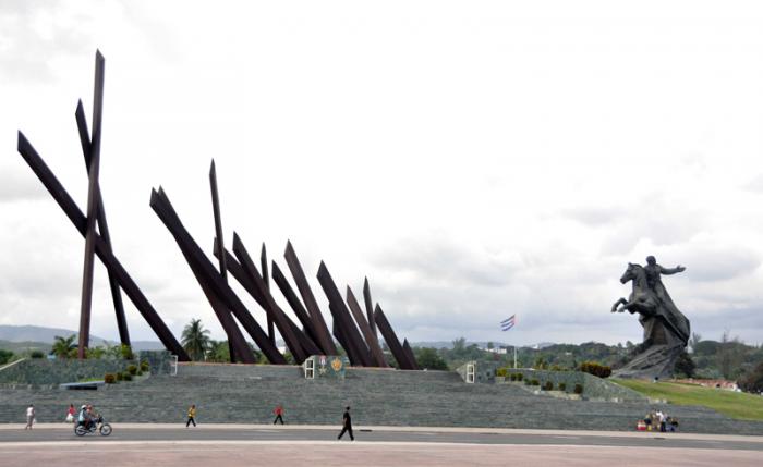 La figura ecuestre del mayor general del Ejército Libertador Antonio Maceo Grajales, el Titán de Bronce, en la plaza de la Revolución que lleva su nombre, no se puede obviar cuando se visita Santiago. Las razones son sencillas: la vida del legendario mambí y los acontecimientos que se desarrollan en este sitio. Del primero basta decir que protagonizó la Protesta de Baraguá, fue pilar – junto a José Martí y Máximo Gómez – en la organización de la guerra de 1895 por la independencia del colonialismo español, y llevó la lucha armada desde el oriente al occidente del país. La plaza fue inaugurada en 1991 por el líder histórico de la Revolución Cubana, Fidel Castro. El conjunto escultórico que la distingue es obra del escultor santiaguero Alberto Lescay y del artista de la plástica Guarionex Ferrer, creador de los 23 machetes que acompañan al héroe.Foto: Yander Zamora