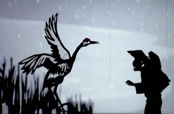 La grulla agradecida que se refiere al acendrado sentimiento de agradecimiento que profesan los japoneses hacia las buenas acciones, destaca por la sutil elegancia de sus marionetas, por esa hermosa ave que planea por toda la pantalla y por la nobleza de su mensaje.