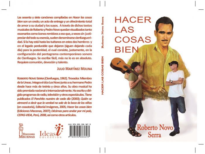 Estos dos, presentados hoy martes como el resto, recopilan los temas musicales históricos de los trovadores Pedro y Roberto Novo (Hacer las cosas bien, Ediciones Mecenas) y del cantautor Ariel Barreiros (Entre el lirio y la espada, Reina del Mar Editores). Los tres, miembros de la Uneac, son poseedores de una estimable obra, digna de aunarse en tales volúmenes.
