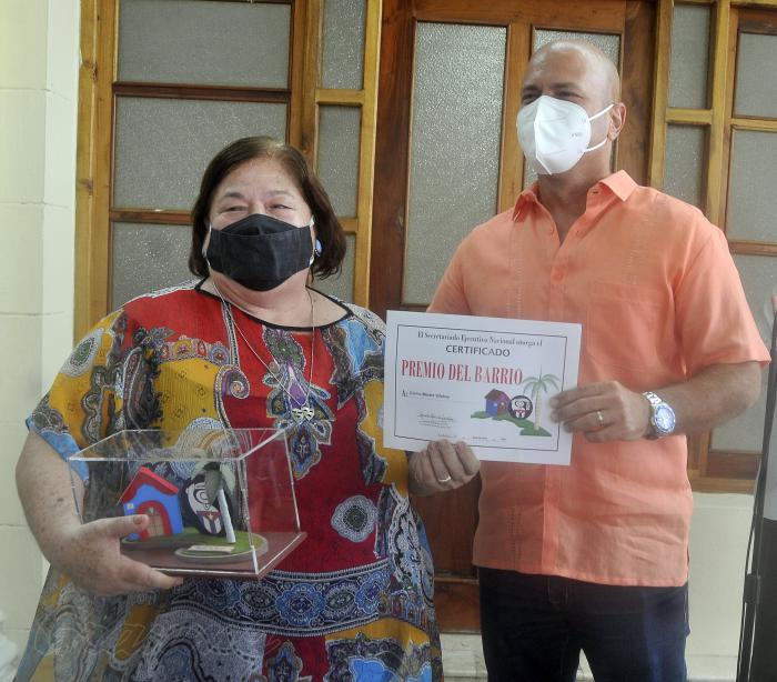 Cubana desde cualquier ángulo que se le mire mientras le habla a su público, a Corina Mestre se le nota su devoción por esta tierra que defiende desde el escenario y el aula. «Heredera» de quienes iniciaron la salvaguarda de la Patria «desde la cuadra, desde la propia casa», la popular actriz, profesora e intelectual recibió este miércoles el Premio del Barrio, de manos de Gerardo Hernández Nordelo, Héroe de la República de Cuba y coordinador nacional de los Comités de Defensa de la Revolución (CDR).