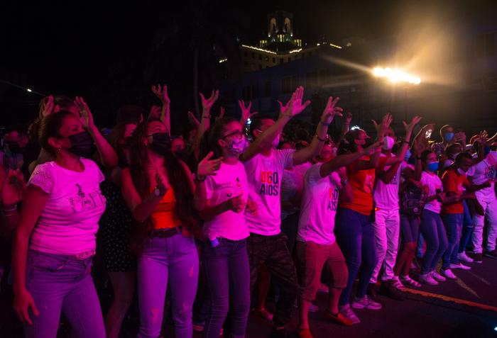 Acompañados por Jorge Luis Perdomo Di-Lella, vice primer ministro; Aylín Álvarez García, primera secretaria del Comité Nacional de la UJC, y Fernando León Jacomino, viceministro de Cultura, la juventud cubana celebró esa noche a todo tren.