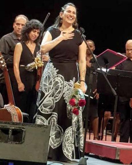 Viene de un país que le atraviesa la garganta, donde los indios se niegan a alejarse de su raza. La escoltan mil pretextos, más recompensas y menos palabras. Con tales revelaciones, nos confirmó una vez más Marta Gómez –invitada para clausurar este domingo, en la sala Covarrubias del Teatro Nacional, el Cubadisco 2023–, quién es, y lo hizo desde la primera de las canciones con la que abrió un concierto memorable, junto a la Orquesta Sinfónica Nacional de Cuba, dirigida por el maestro Enrique Pérez Mesa.