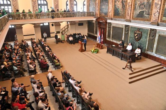 A la ceremonia de entrega, celebrada en la mañana de este viernes en el Aula Magna del centro de alto estudios, asistió el Primer Secretario del Comité Central del Partido Comunista y Presidente de la República, Miguel Díaz-Canel Bermúdez.