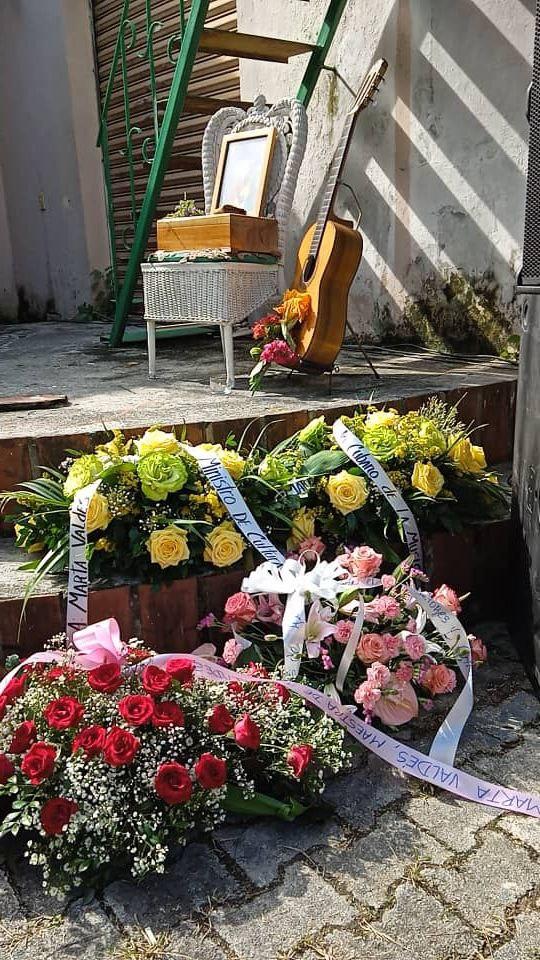 Ofrendas florales del Ministerio de Cultura, Unión de Escritores y Artistas de Cuba, la Asociación Hermanos Saiz, Silvio Rodríguez, presente junto a su familia, entre otras instituciones culturales y amigos colmaron el escenario ante su silla de mimbre donde permanecieron las cenizas de la destacada compositora cubana.