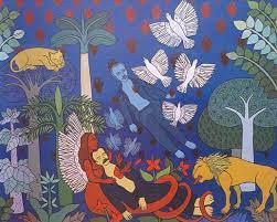 Alicia Leal en Muerte de Martí, óleo sobre tela de 1998, expone a un Martí que yace descalzo en los brazos de una mujer alada que lo sostiene amorosa y lo envuelve con su larga cola.
