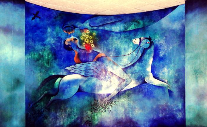 «Sobre un fondo de sombras verde azuladas propio de la paleta del artista, Martí asciende desnudo sobre un caballo alado y aun retiene en sus manos las bridas del corcel. La muerte, otra vez una mujer extraña, lo espera en lo más alto y le infunde su aliento hasta dejarlo exánime como al final de una pasión, pues como expresara el pintor, él se resiste a morir (…)».
