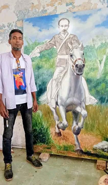 Manzanillo, Granma-.Amaury de Jesús Palacio Puebla, pintor manzanillero reconocido por su rigor histórico y estilo realista, asumió el desafío de crear un retrato ecuestre de José Martí que formará parte del montaje museográfico en el Memorial de Dos Ríos.