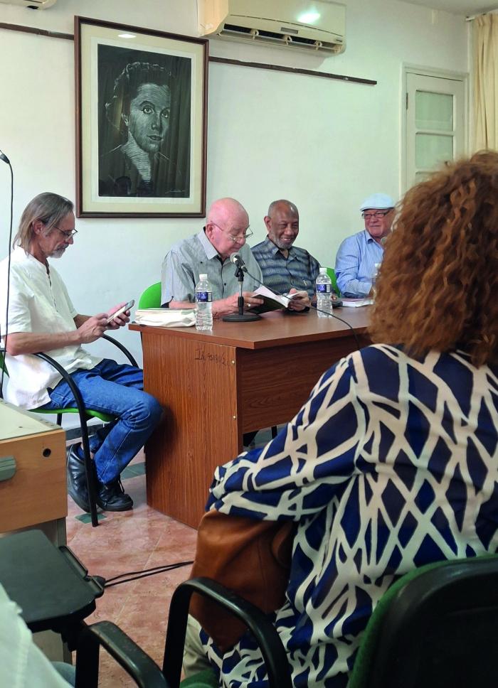 Otras voces, como las del también premio nacional de Literatura Waldo Leyva, Luis Lorente, Maylan Álvarez y Alberto Peraza compartieron textos en los que el hálito viene del café que hace posible la mañana, del pensar que mitiga la antigua soledad, la trascendentalidad o no de la mujer poeta, y la culpa que se pega al cuerpo como los malos olores.