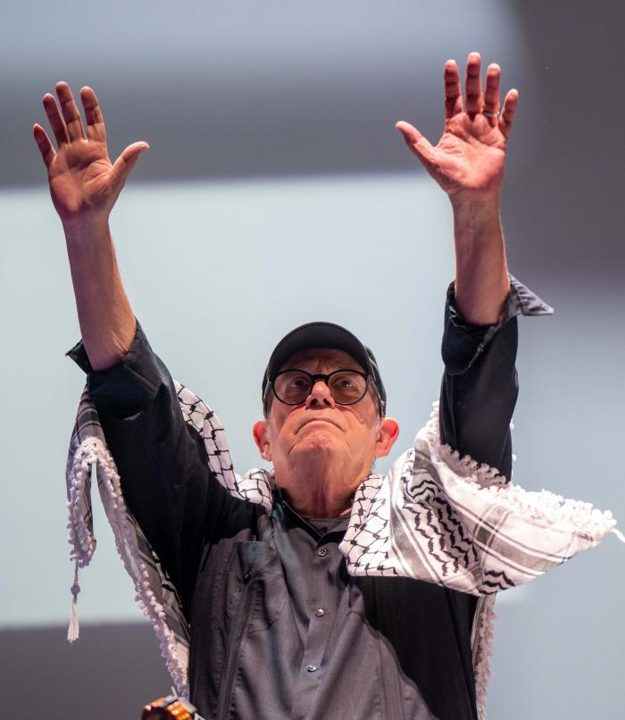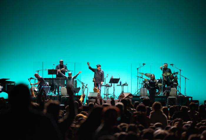 Regresa a las tablas casi solo, sin la mayor parte de sus músicos. Habla algo mínimo sobre la gente que ha perdido. Luego canta tres canciones y, tras cada una de ellas, dice suave y melancólico un nombre y una coletilla, siempre misma.