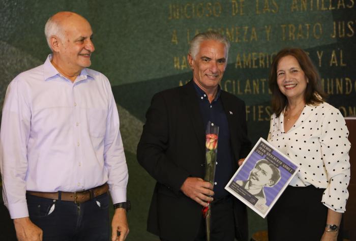 «Dedico este premio –que recibo con infinito amor, en el año del centenario de Fidel Castro Ruz– a todos los colegas trabajadores de la prensa y a los revolucionarios que hoy desarrollan una intensa y desigual batalla ideológica en las plataformas digitales», dijo el homenajeado.