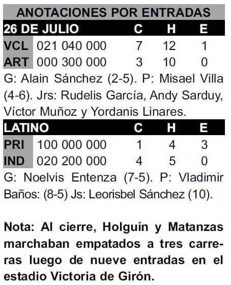En el Cristóbal Labra, el derecho holguinero Yusmel Velázquez lanzó de forma excelente durante ocho entradas para maniatar a los Piratas de Armando Jhonson. En el noveno —con marcador de 7-1 a su favor—, el mentor Irochi Bartutis lo sustituyó por Carlos Alberto González. Pero este no logró sacar tres outs: regaló una base por bolas y Michel Enríquez le sacó la pelota fuera del parque. Afortunadamente para los Sabuesos, el cerrador Rodolfo Sori resolvió la situación sin complicaciones.
