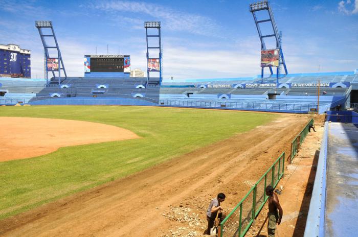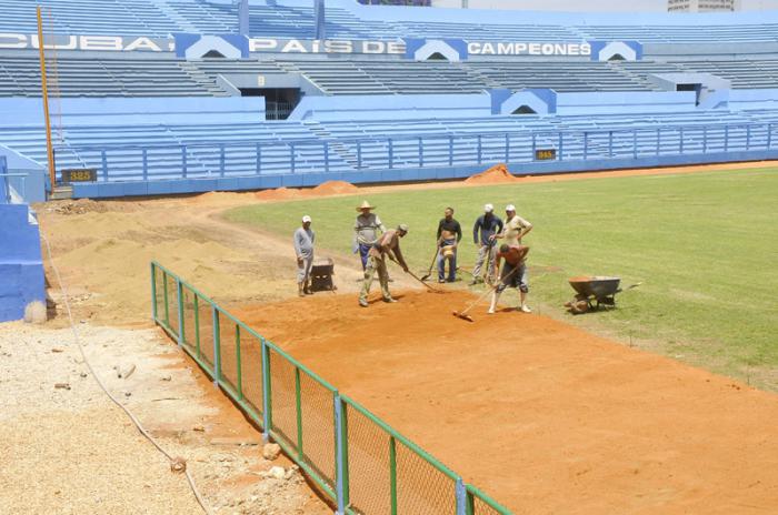 “La tarea de revestimiento la realizarán los trabajadores del parque en conjunto con la brigada Forestal Habana, perteneciente al Ministerio de la Agricultura, que anteriormente demostró su capacidad y nivel en el terreno al dejarlo en perfectas condiciones”, aseguró Delgado, quien también adelantó que ya se encuentra en el país la malla protectora de color azul, la cual se montará detrás del plato cuando esté en el estadio.