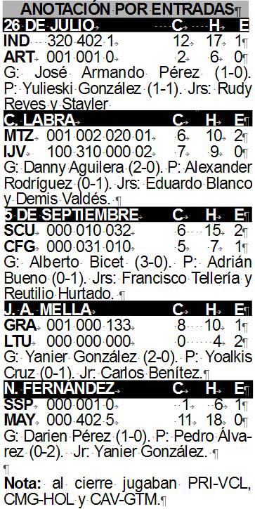 Son pasajes propios de una pelota modesta que viste a esta Serie Nacional, la cual, aunque austera en virtudes hasta el momento, sí ha estado hinchada en actitud como lo demuestran los 19 encuentros decididos por una carrera, sin tener en cuenta los resultados de anoche o el propio cotejo Isla de la Juventud-Matanzas, en el que los pineros barrieron en tres desafíos por la diferencia mínima.