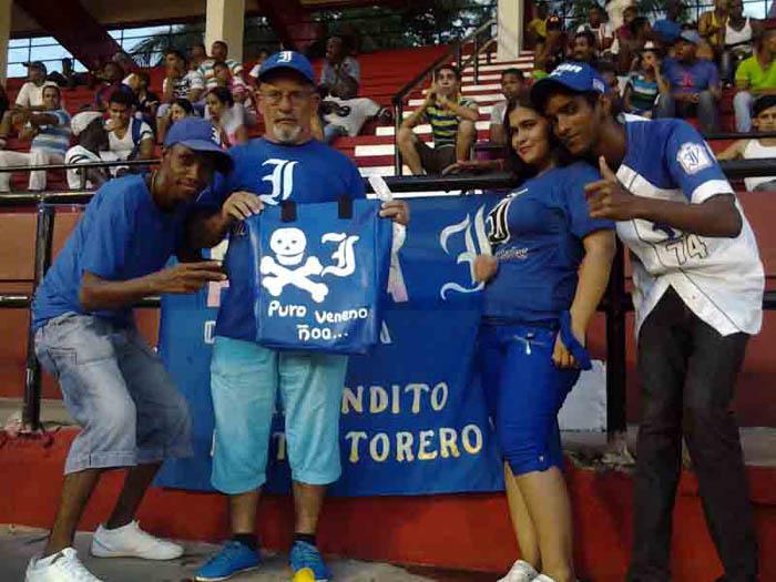 Veneno es un ferviente aficionado de Industriales, sigue al equipo por cualquier paraje y ahora ha hecho una parada obligada en Santiago de Cuba, en el parque Guillermón Moncada, que según los propios parciales indómitos se ha llenado para el pleito contra los Leones como nunca antes esta temporada.