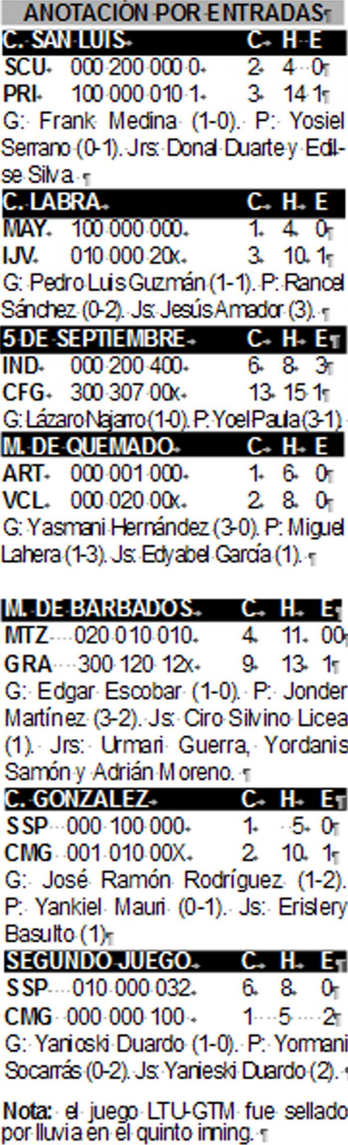 “El pitcheo se ha comportado bien, pese a que no contamos por lesión con Yoenis Turcás y Oriolbis Cobas, dos hombres de experiencia. Los abridores han caminado un buen número de entradas y los relevistas llevan el peso de ganar o perder, pues muchos de nuestros juegos se han decidido al final. En este sentido es muy importante contar con cerradores efectivos, más de uno, por lo que trabajamos en la formación y especialización. Esta ha sido la principal arma del equipo hasta ahora, a la espera de que despierte la ofensiva”, añadió el director oriental, quien achacó la falta de bateo a los escasos topes de pretemporada.