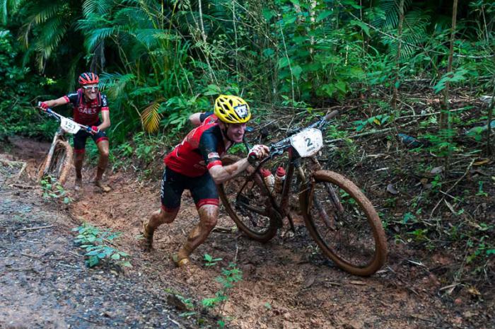 Literalmente cubiertos de fango salieron los protagonistas al mirador de Viñales, sobre el kilómetro 30 de carrera, posición en la cual la cubana Olga Echenique marchaba con aceptable ventaja y muy buenas posibilidades de ampliar la brecha en la cima de la clasificación para damas.
