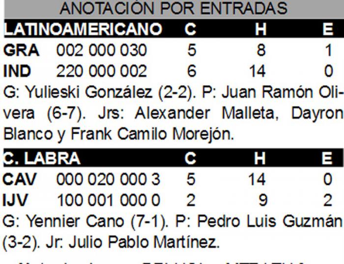 Cuando todo indicaba que los Alazanes de Granma se anotaban un triunfo en el Latino apareció el bate de Frank Camilo Morejón en el noveno capítulo, con un out y Juan Carlos Torriente en la intermedia, para botarle la pelota al relevista Juan Ramón Olivera y darle a Industriales una espectacular victoria por la mínima, 6 carreras por 5.
