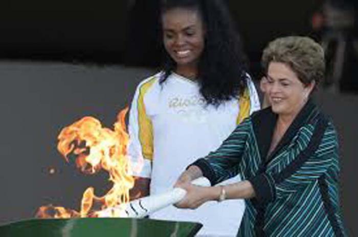 La pira con el fuego olímpico traído de Atenas fue encendida en el Palacio de Planalto por el titular del comité organizador de Río-2016 y del Comité Olímpico Brasileño, Carlos Nuzman, e inmediatamente después la gobernante prendió la antorcha y la entregó al primer relevo, la bicampeona olímpica de voleibol Fabiana Claudino.