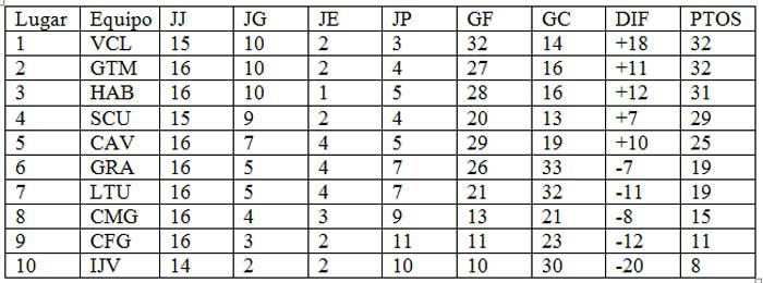 Aunque villaclareños y guantanameros poseen 32 unidades, una más que La Habana, la diferencia de goles beneficia al equipo anaranjado por un +18, mientras los del guaso tienen +12 y los ocupantes del tercer puesto +11, cuotas muy difíciles de superar por quienes escoltan al líder a estas alturas del torneo.