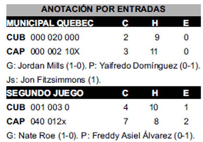 Yaifredo Domínguez, llamado al rescate, sacó el tercer out del inning, pero en el siguiente capítulo soportó tres imparables y un elevado de sacrificio de Maxx Tissenbaum que remolcó la del triunfo. En total los dos primeros intermedios cubanos permitieron tres limpias y ocho jits en solo cuatro entradas.