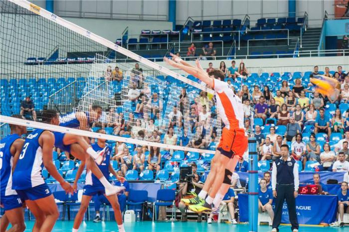 En el primer tiempo los antillanos salieron delante 10-6, ventaja que recortaron los holandeses hasta producirse un empate a 22 puntos. Un bloqueo de Osoria —según relató el sitio oficial del evento— dio más adelante el tanto 24 a los cubanos, quienes remataron el parcial 25-23 a su favor.
