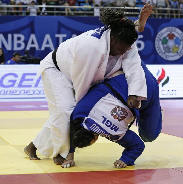 Su primera víctima fue la nipona Susuka Uchihashi, bronce en la propia cita mongola hace tres años, quien sufrió una proyección de la cubana cuando marchaba debajo en la pizarra por dos shidos, según refleja el sitio oficial del certamen.