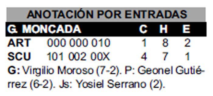 Desde el mismo episodio inicial los santiagueros cayeron sobre el zurdo Geonel Gutiérrez, y aprovecharon las imprecisiones defensivas de los artemiseños, siempre con Martínez en rol protagónico, cumpliendo con eficiencia su papel de limpiabases.