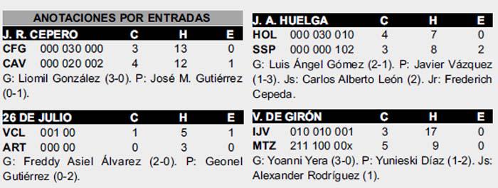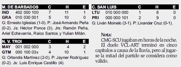 Resultados del jueves en la 56 Serie Nacional de Béisbol
