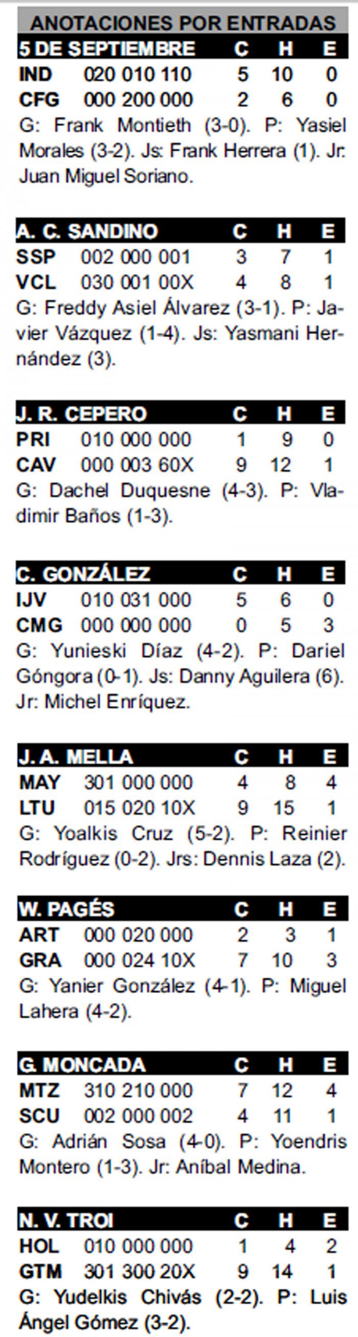 Yordanis Samón es todo un coloso en el cuarto turno, cubierto a la perfección por Jefferson Delgado, implacable con su bateo a la banda opuesta. Pero más allá de estas bujías, los otros cumplen con su rol al dedillo, incluso los suplentes habituales, esos que solo salen tres o cuatro veces por semana para realizar veloces carreras por las almohadillas.