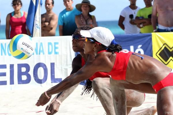 En la competencia femenina, animada por 12 tándems en cuatro grupos, las cubanas Yanisleidis Sánchez-Lidiannis Echeverría ganaron sus dos encuentros. Inicialmente desbancaron (21-8, 21-4) a Amber Bennett-Melanie Valenciana, de Islas Vírgenes, tan temprano como a las 8:30 a.m., y cuatro horas después aventajaron a Rikiesha Leveret-Kenvia Hodge (21-8, 21-4), de Anguila.
