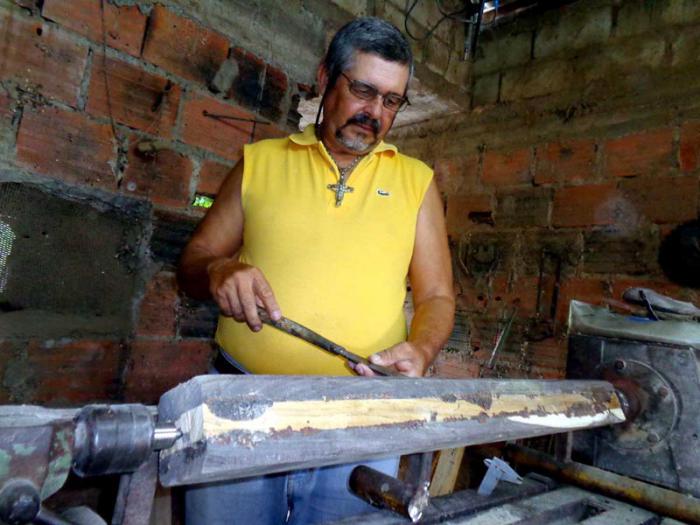 PINAR DEL RÍO.—En su carpintería, Claudio Roba trabaja desde hace tiempo en la confección de un bate que haga que la bola salga siempre hacia atrás.