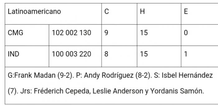 Párrafio aparte para la excelencia de Fréderich Cepeda, quien desde la tercera batuta de Industriales llevó a la hoja de anotaciones tres jits en cinco tuirnos, uno de ellos jonrón, con cuatro empujadas (la mitad de las de su equipo) y anotó en dos ocasiones. De 5-3 también se fue Jorge E. Alomá, incluyendo un doblete y una anotada, y Yordanis Samón, de 4-2, con cuadrangular, dos propulsadas y un registro en el plato.