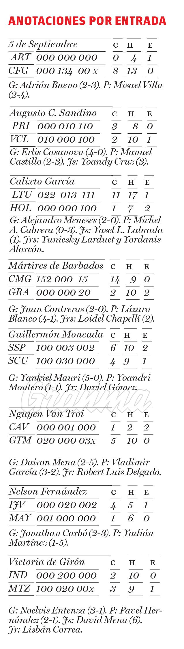 En sus cuatro presentaciones, solo los artemiseños le pudieron marcar dos anotaciones. En su última salida dejó sin carreras a los Piratas de la Isla, en siete capítulos completos. Con anterioridad pintó de ceros a los Leñadores de Las Tunas y a los Alazanes de Granma, elencos distinguidos tradicionalmente por su ofensiva.
