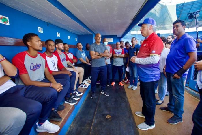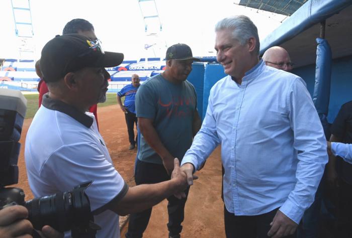Desde el banco de primera base del estadio Latinoamericano, Díaz-Canel compartió con ellos sus impresiones «como un aficionado más de la pelota en Cuba», y les transmitió la confianza que tiene el pueblo cubano de que, con la intensidad con que el equipo «se ha preparado, con la calidad que tiene, pueda hacer un buen papel».