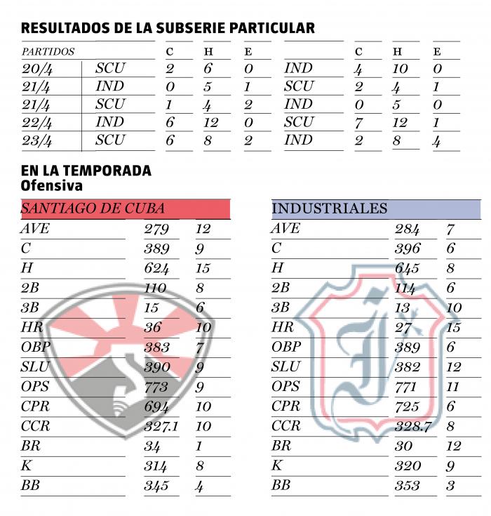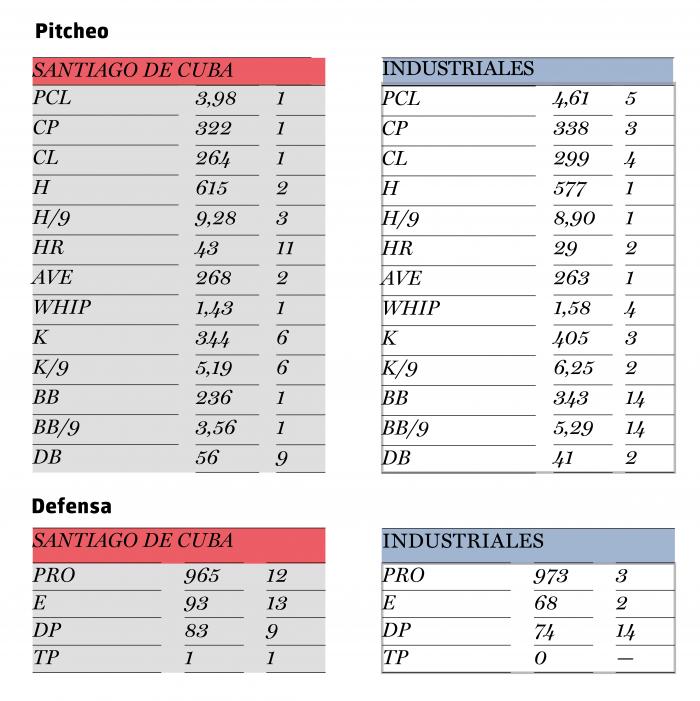 Los que veremos a partir del sábado son dos elencos con comportamientos diferentes en la campaña. Santiago de Cuba fue líder todo el tiempo, hasta la última semana del calendario regular, que cedió el banderín a Las Tunas; pero Industriales, vino del inframundo, del sótano, al cierre del primer tercio, a encaramarse en la postemporada.