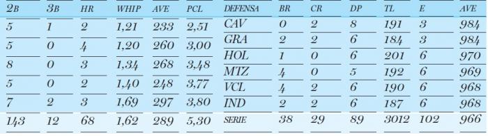 Vueltabajeros y espirituanos son los únicos con efectividad en la lomita, con tres o menos carreras limpias por juego, pero los avileños también ocupan un puesto en ese top cinco desde el montículo. En la defensa, de los punteros de la tabla de posiciones, solo los Tigres encuentran espacio en la vanguardia, por demás, con el mejor average en este importante renglón.