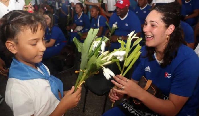En la Internacional Cubana del Tabaco, sobre todo con sus operarias, que dotan a la Patria de uno de sus más preciados rubros exportables, hubo la misma comunión de altruismo. Y en la EIDE Mártires de Barbados, en cuyas aulas y canchas se fecundan las emociones del deporte, Omara llenó de simbolismo la jornada, al ponerle en el pecho su medalla de oro a uno de los pequeñines que allí se forjan.