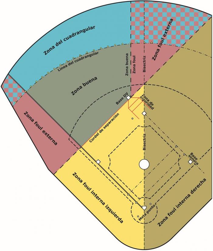 - Toda bola bateada debe pasar entre esos dos puntos, porque entre primera y la intermedia la bola sería decretada foul.