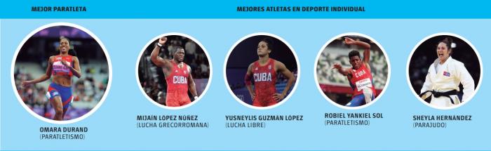¿Quiénes son los mejores deportistas de Cuba en 2024? Mijaín López, Yusneylis Guzmán y Omara Durand lideran a los mejores del deporte cubano en 2024 Foto: Fotocomposición Foto: Fotocomposición Foto: Fotocomposición