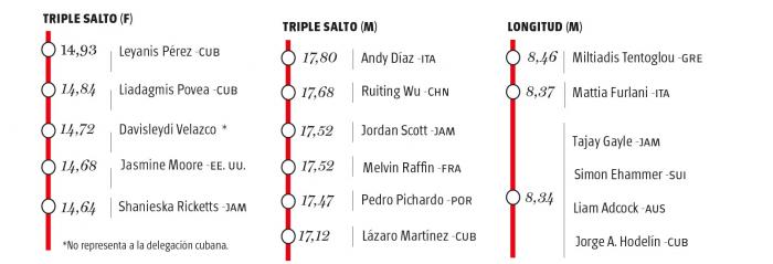 Proponemos una mirada a la distancia que hay entre los cinco primeros de la temporada y los cubanos. No se trata de comparaciones, sino de ilustrar el grandísimo reto de la delegación de la Mayor de las Antillas.