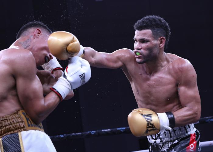 En el plato fuerte de la noche sabatina Erislandy Álvarez tuvo que emplearse más de lo habitual para derrotar al mexicano Rogelio Jiménez en 10 asaltos. Aunque el pugil rival lo presionó hasta llevarlo a un conteo de protección el cienfueguero sacó la casta y retuvo el cinturón continental latinoamericano y lanzó candidatura para la corona mundial del boxeo profesional.