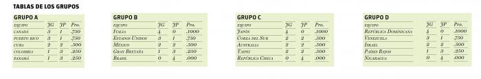 Al cierre de la fase de grupos exhiben el tercer promedio con el madero, de abajo hacia arriba, apenas superiores a República Checa y Brasil. Ocupan el mismo puesto 18 en la lista de imparables, el 17 en cuanto al porcentaje de embasados y son los decimosextos con mayor total de bases. Aparecen en el escaño 13 de anotadas y en el 12 del OPS.