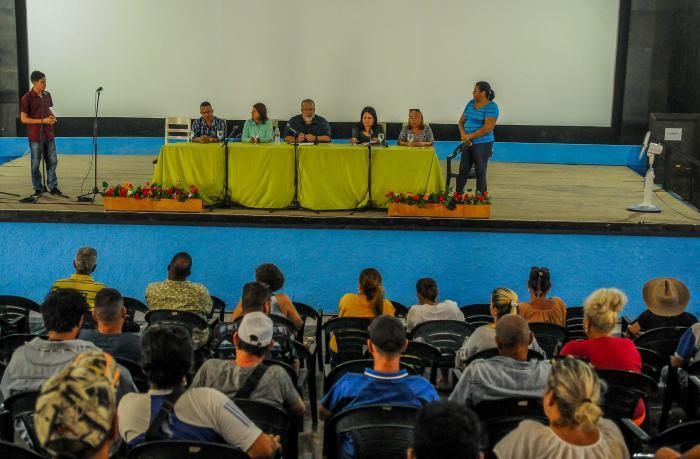 En el cine Jiba, los candidatos sostuvieron un fructífero intercambio con trabajadores del sector de la cultura, artistas y artesanos de la demarcación holguinera, escenario en el cual el Jefe de Gobierno insistió en fortalecer y rescatar la actividad cultural en la Villa Blanca de los Cangrejos.