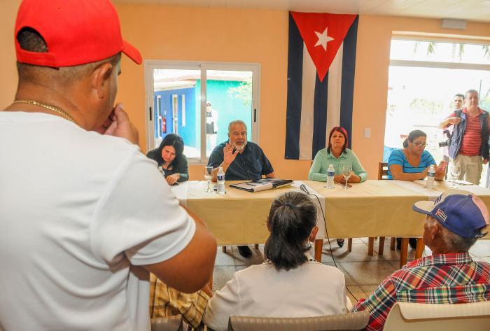 En horas de la tarde, Marrero Cruz intercambió con estudiantes y trabajadores de diversos sectores del consejo popular Floro Pérez, que incluye 32 barrios, tres de ellos en situación de vulnerabilidad.
