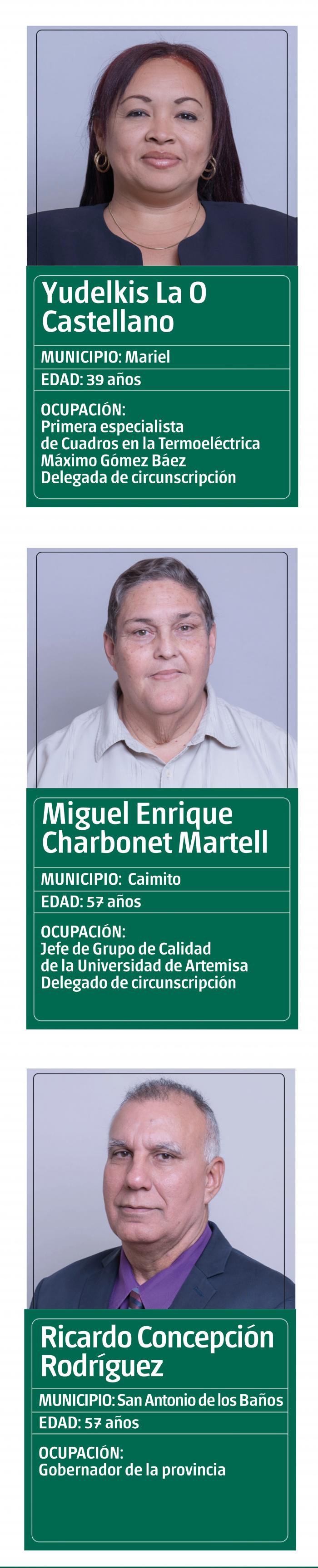 ..los artemmiseños nos sentimos muy bien representados por nuestros tres diputados el comandante de la Revolución Ramiro Valdés Menéndez,la continuidad de la Revolución en el joven Euler Velázquez Cantillo delegado de circunscripción y Presidente de la Asamblea municipal y la secretaria del Comite Provincial del Partido Gladis Martinez Verdecia