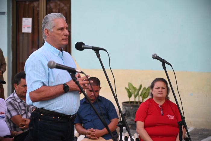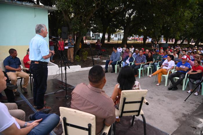 Antolín Mendieta hizo un recorrido familiar, contó cómo, por allá por los años 70, su madre y sus diez hijos vivían en una casa de tabla de palma y techo de guano y la Revolución le dio hogar nuevo con lo necesario dentro; e igual pasó con su hermana en los años 80, y él se hizo ingeniero mecánico y también pudo construirse en los años 90 una casa confortable. «Y ahora estoy a 30 metros del Presidente», dijo Mendieta agradecido; Díaz-Canel fue al encuentro del negro fornido, para que ni un metro los separara.